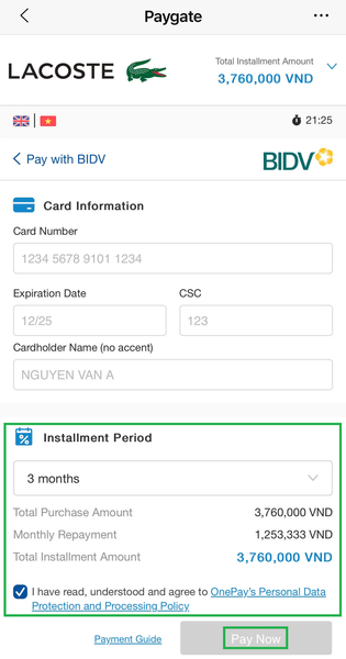 Step 3: Select the Installment Period and Enter payment card information