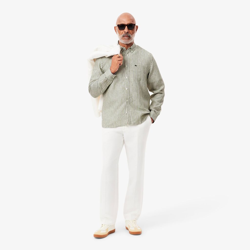 Chiếc áo sơ mi hoàn hảo này được làm từ chất liệu linen sọc mát mẻ và thấm hút. Một món đồ đa dụng với thiết kế dáng rộng rãi thoải mái, cổ áo cổ điển và các cúc ngọc trai tự nhiên.